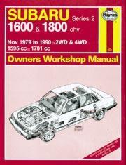 • Manual de oficina Subaru 1600 & 1800 com capa vermelha e ilustração do carro
