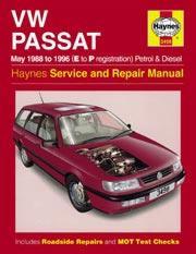 Capa do manual Haynes para VW Passat com carro vermelho e motor à vista
