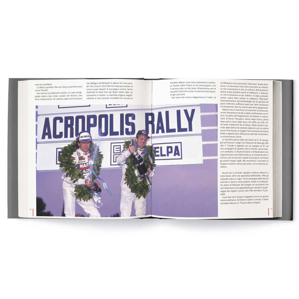 Biasion remembers, with an exciting, incisive and direct narrative style, that unforgettable sporting period through his sensational 17 victories, which can be described as “Seventeen steps in history”. Like all good story-tellers, the Italian ace describes the opponents he clashed against all the time, reveals the background that led to this or that victory, explains the Lancia Deltas that he powered to success in unforgettable races and recalls the challenges at each different latitude.