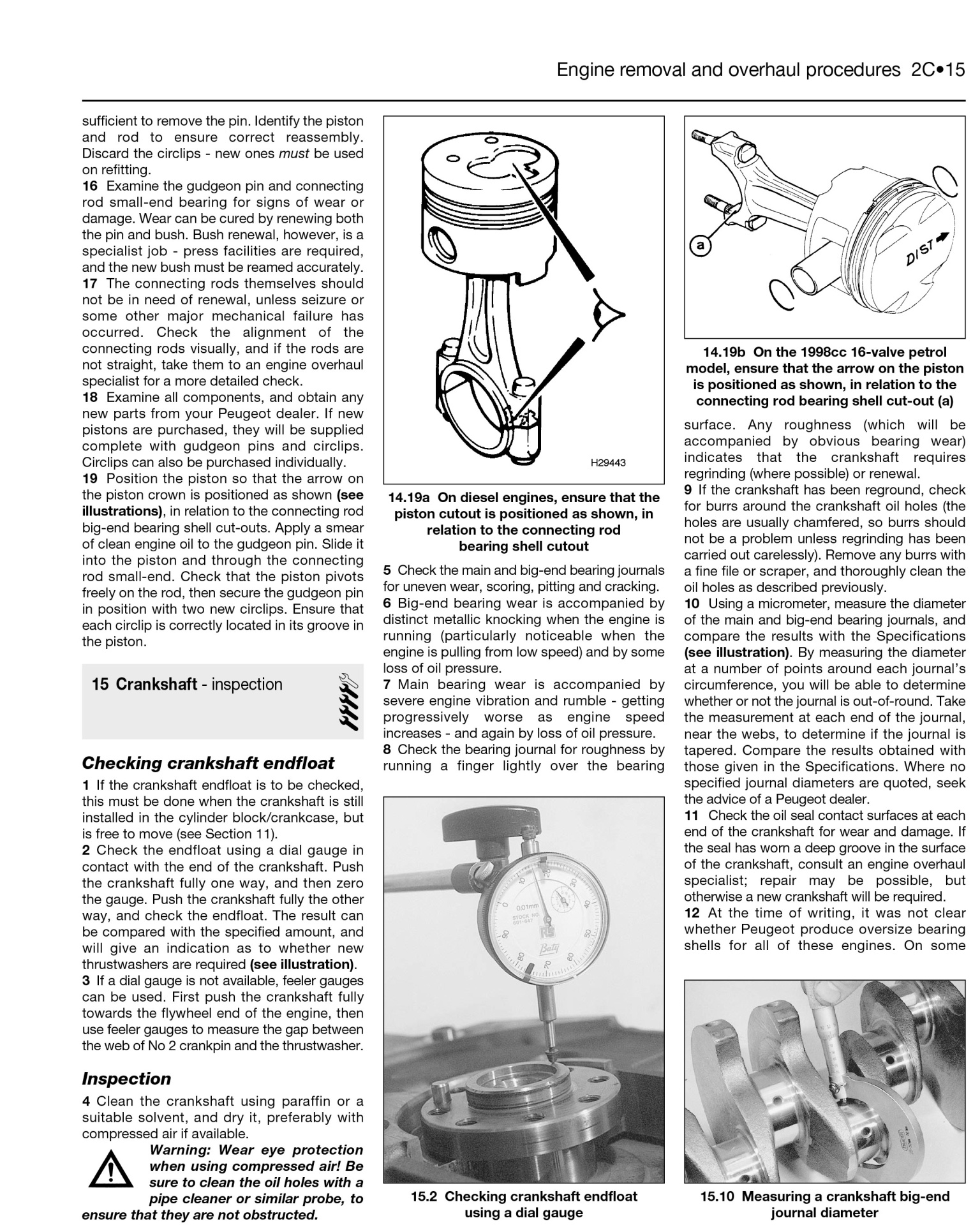• Página de manual técnico com desenhos de peças de motor e instruções em inglês