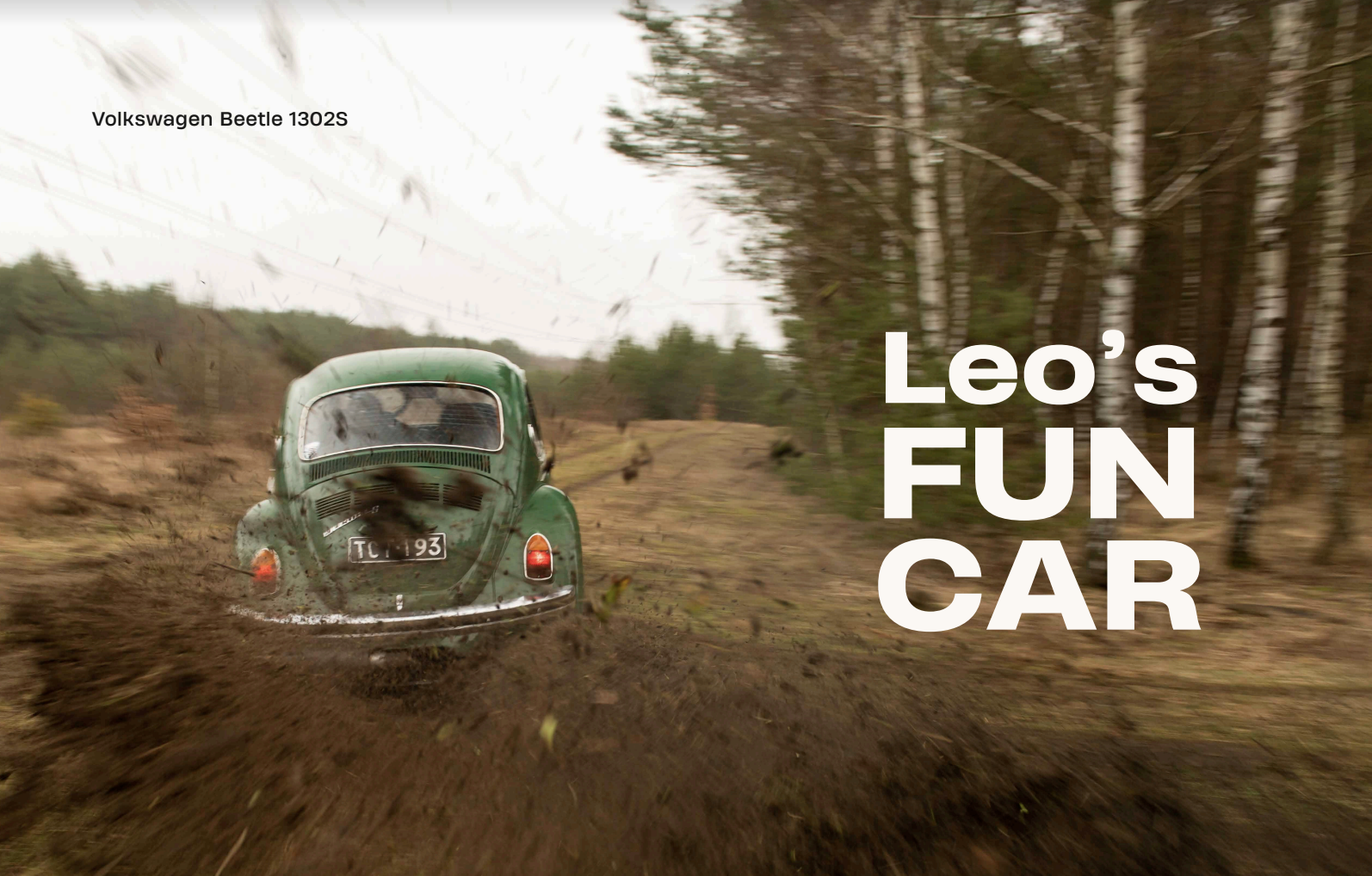 na floresta com o Volkswagen Carocha de Leo Kinnunen;