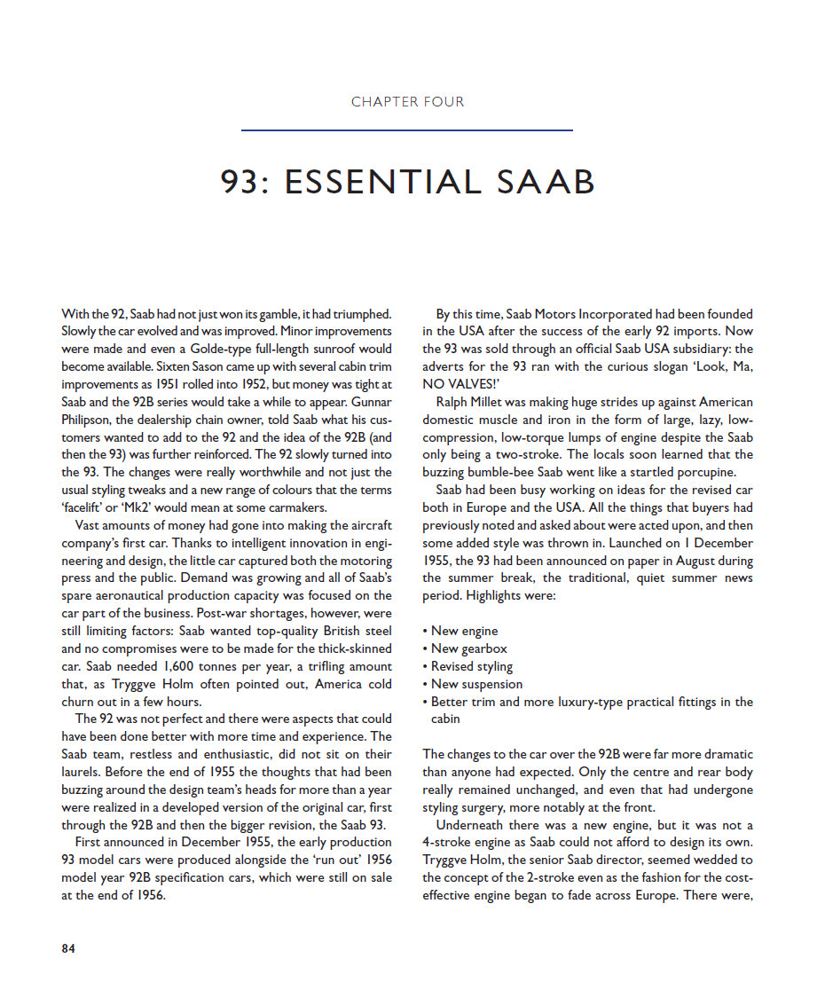 There is coverage of the original Saab story in North and South America and a comprehensive review of Saab 92, 93, 96, motor sport history. Full technical details and specifications and tuning details are given and finally, there is a chapter on owners' experiences and Saab veteran's recollections.