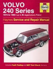 Manual Haynes Volvo 240 Series vermelho vinho com texto e ilustração de carro