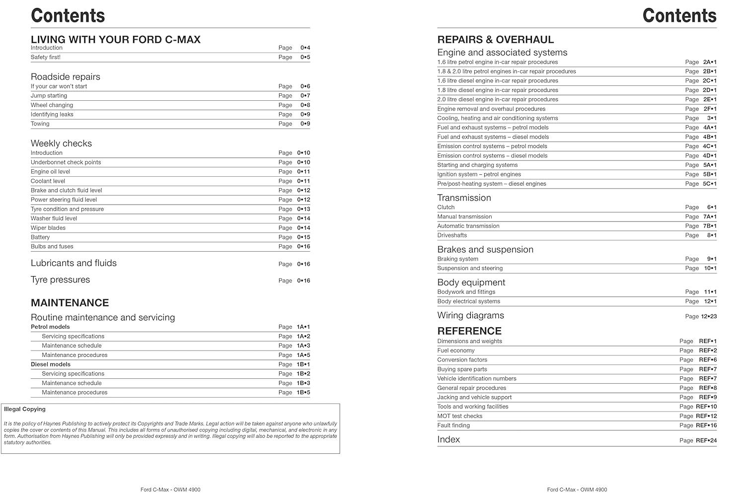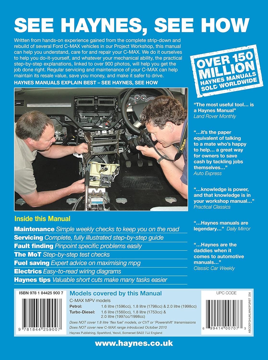 Manual Tecnico Editado pela Haynes para os modelos C Max a gasolina de 1.6 (1596cc), 1.8 (1798cc) & 2.0 (1998cc) e motores a Diesel de 1.6 (1560cc), 1.8 (1753cc) & 2.0 (1998cc)