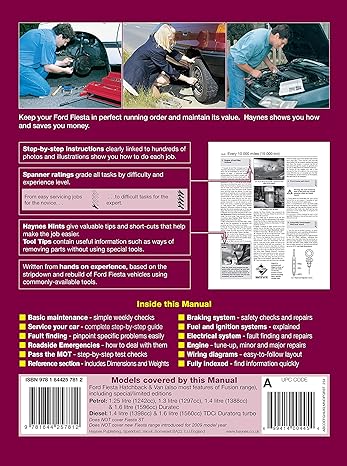 Ford Fiesta Petrol & Diesel 2002-08 45,00 € Desconto de %. IVA incluído. Partilhar Compre este produto e ganhe 42 Pontos! Comprar Contactar 0 unidades em stock | SKU: 9780857339737 Manual técnico editado pela Haynes para os modelos com motores de 1242, 1297, 1388, 1596cc a gasolina e D/TD de 1398cc TDCi (PUB 09/2014, Autor: R.M. Jex, idioma: Inglês, 256 págs, capa mole, 21X27 cms, fotos ) Marca Haynes (Auto) Características