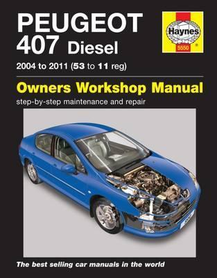 • Capa de manual do Peugeot 407 Diesel azul com capô aberto e logo Haynes