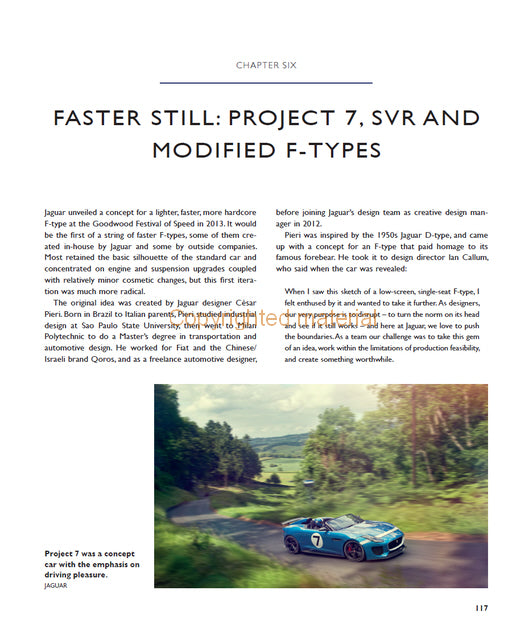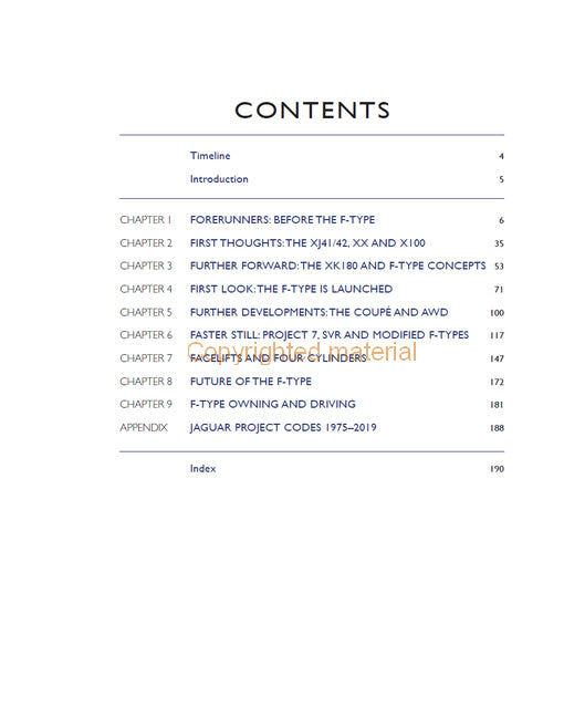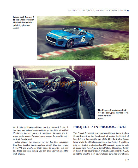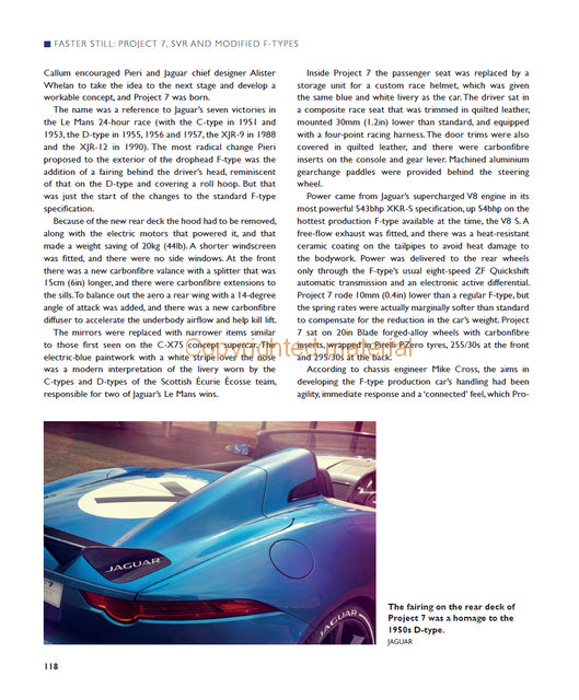 This book tells the fascinating, and sometimes frustrating, story of the journey from the iconic Jaguar E-type to its successor, the F-type. With nearly 300 photographs, it documents the evolution of the F-type from the Pininfarina XJ Spider through Jaguar's own XJ41/42, XX and XK180. It reviews the whole range of F-type convertible and coupe models and discusses the wild Project 7 and the latest turbo-charged four-cylinder cars. The special vehicles produced for Team Sky and Bloodhound SSC are included along with a useful chapter on buying an F-type. Finally, the book considers the F-type's future in a changing automotive world.
