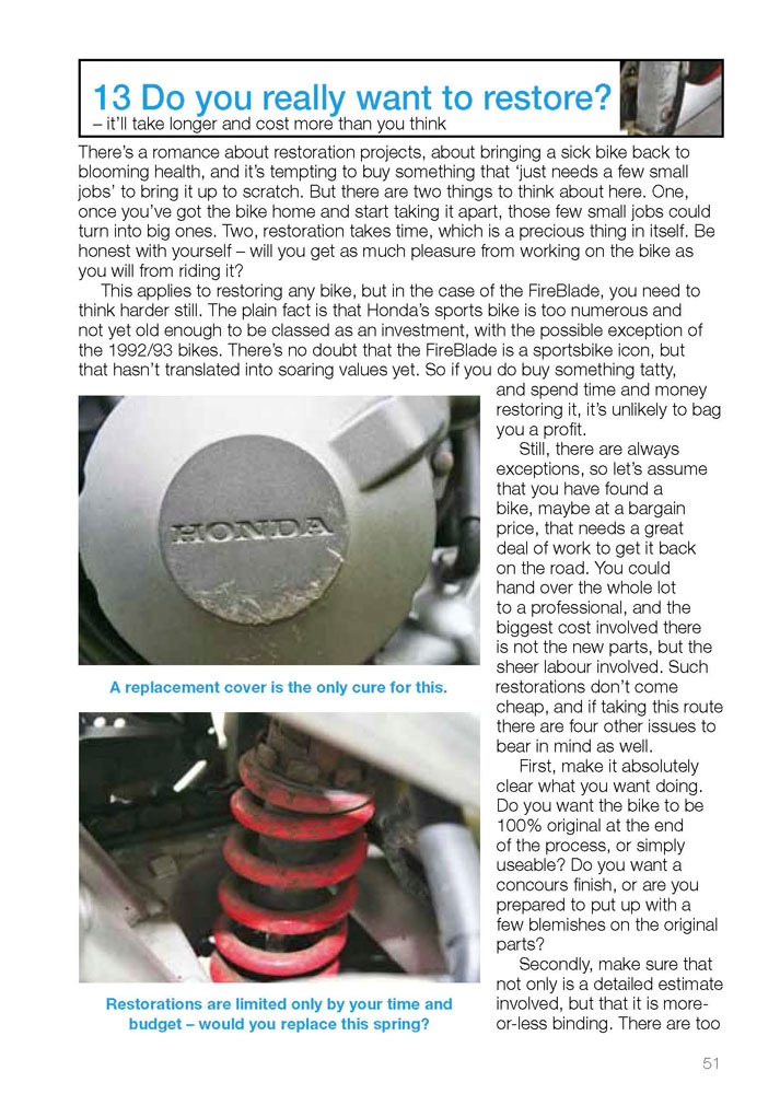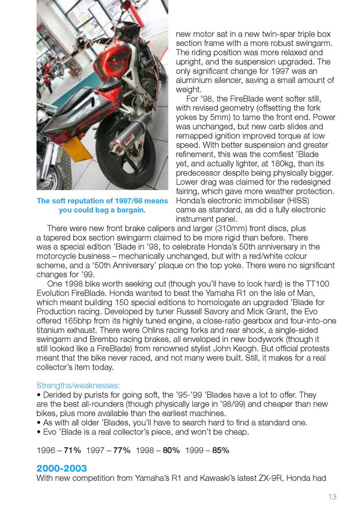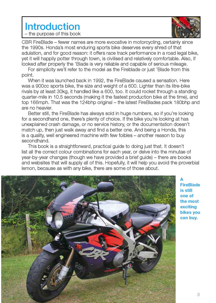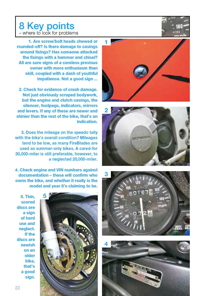 Honda CBR Fireblade: Essential Buyers Guide 19,00 € Desconto de %. IVA incluído. Partilhar Compre este produto e ganhe 17 Pontos! Comprar Contactar 0 unidades em stock | SKU: 9781845843076 Guia para o comprador ou proprietário de um CBR Fireblade, CBR900, CBR900RR, CBR1000RR. 893cc, 929cc, 954cc, 998cc, 999cc. Integralmente ilustrado a cores, indica as características e pormenores de cada ano de 1992-2010. (PUB 05/2011, Autor: Peter Henshaw, Idioma: Inglês, 64 págs, capa mole, 14X19 cms, 100 fotos ) Marca Veloce Características