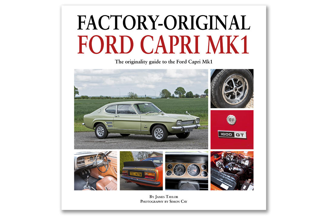 • Capa de livro com título Factory-Original Ford Capri Mk1 e fotos do carro