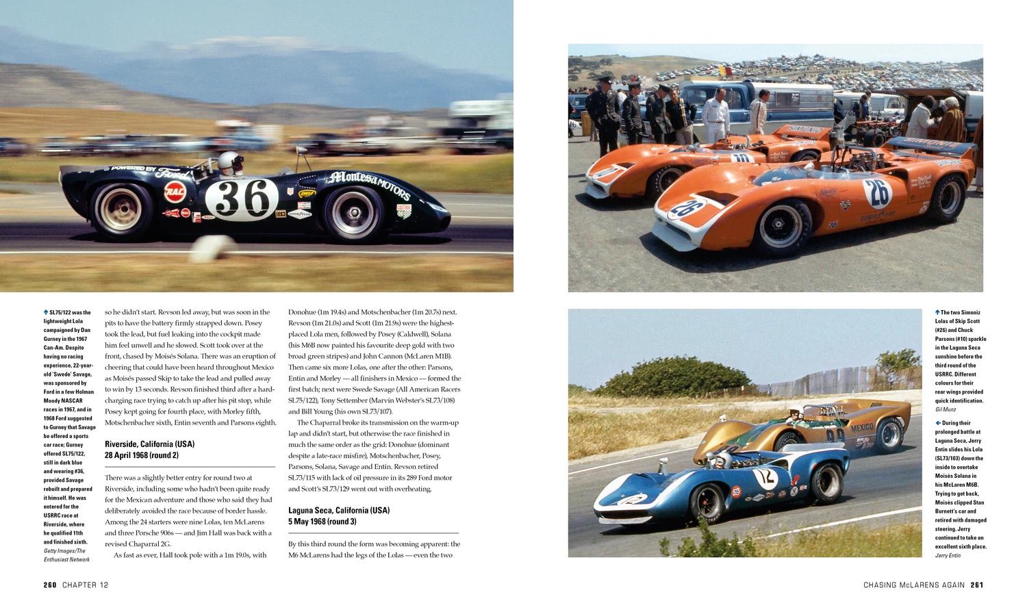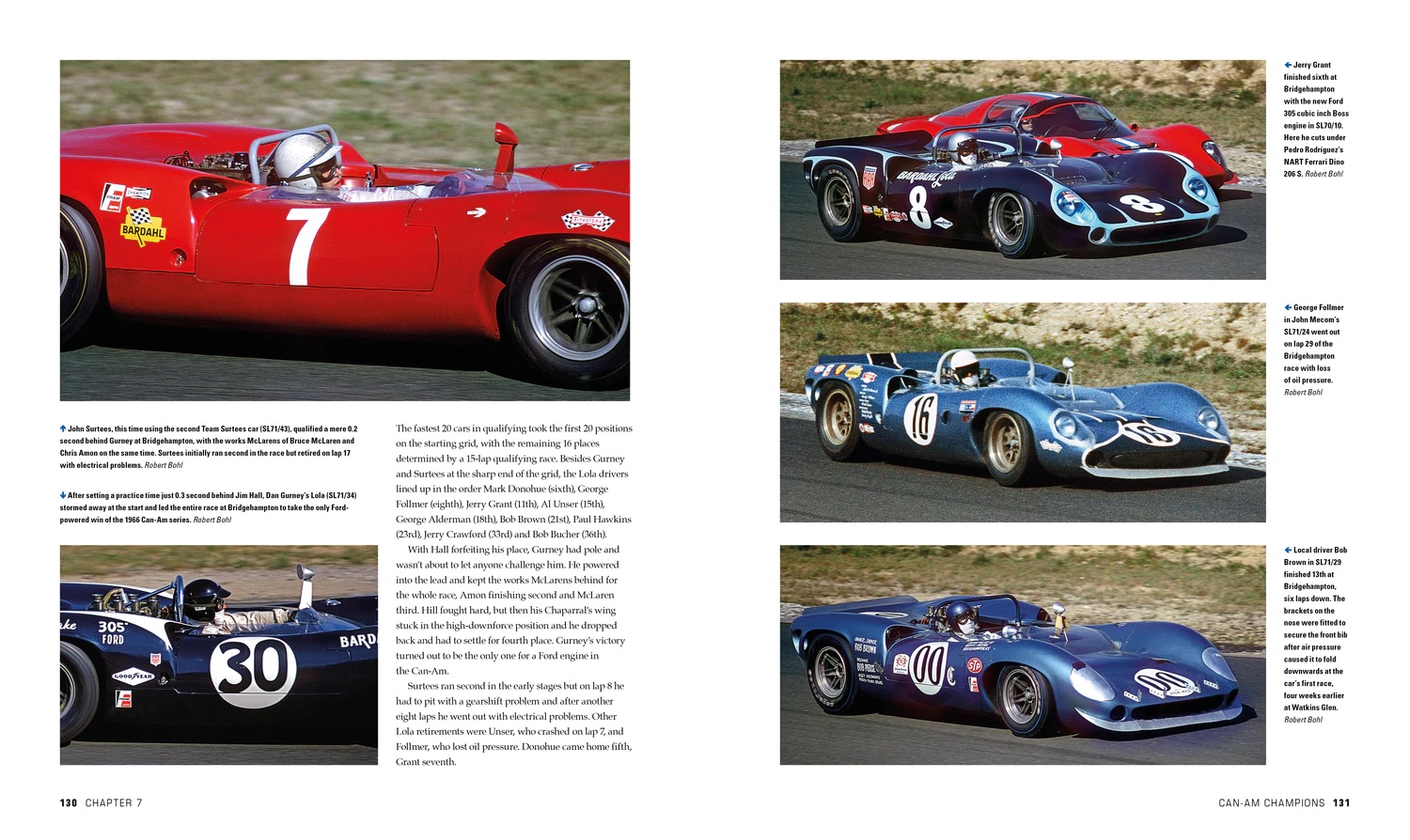 Covers every race from 1963 to 1974 in which these Lolas ran, split by World Sports Car Championship, European and South African racing, and separately all the SCCA, USRRC and Can-Am series races, detailing the cars and drivers, the opposition, the practice times and grid positions, the story of the races, the results and post-race analysis.
