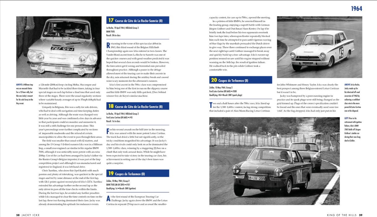 Jacky Ickx is one of the true greats of motor racing. In a career spanning nearly 40 years, he was both highly successful and hugely versatile, racing at the highest level in a wide variety of categories — including Formula 1, sports cars, touring cars and rally raids — and winning throughout. Among many accolades, he won the Le Mans 24 Hours an unprecedented six times and twice finished runner-up in the Formula 1 World Championship. This exhaustively researched book has been written with his full co-operation and outlines every one of the 565 races that he contested in cars and on motorcycles, forming a detailed and insightful record of his racing life supported by over 850 photographs, many of which have never been published before.