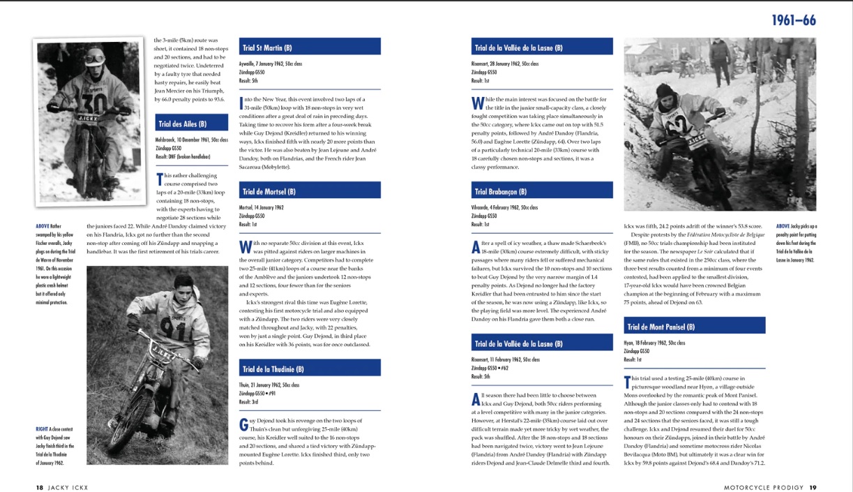 Starting in motorcycle trials, Ickx was twice crowned Belgian champion before switching to four wheels; he immediately proved himself a winner in touring cars and single-seaters, becoming European Formula 2 Champion in 1967.