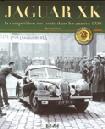 • Capa de livro com texto 'JAGUAR XK' e fotografia de carro clássico preto e branco