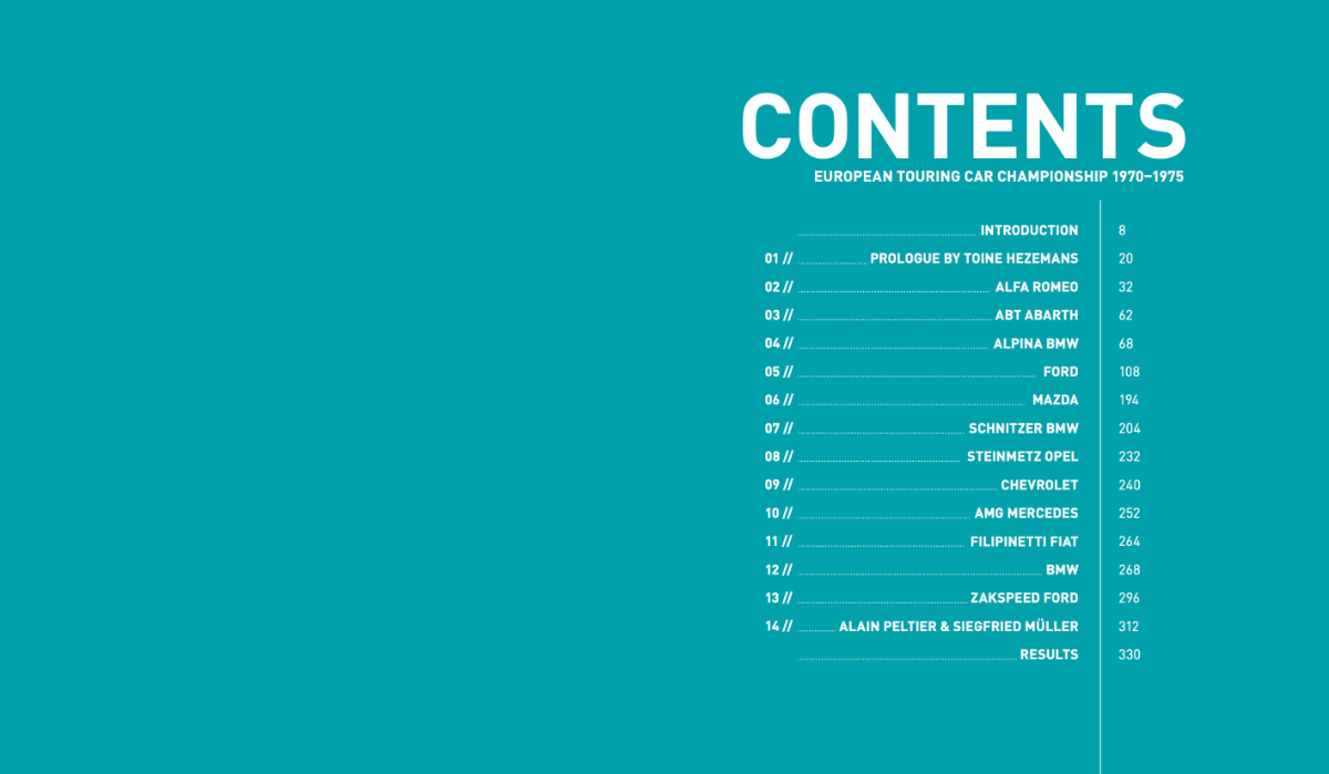 Este livro aborda corridas emocionantes da época e detalha a tecnologia por trás de todos os carros importantes, incluindo os da Abarth, Chevrolet, Fiat, Mazda, Mercedes e Opel. É uma visão abrangente de uma época fascinante nas corridas de carros de turismo.