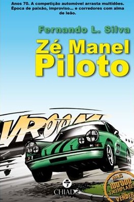 • Capa de livro Zé Manel Piloto com carro de corrida verde em pista