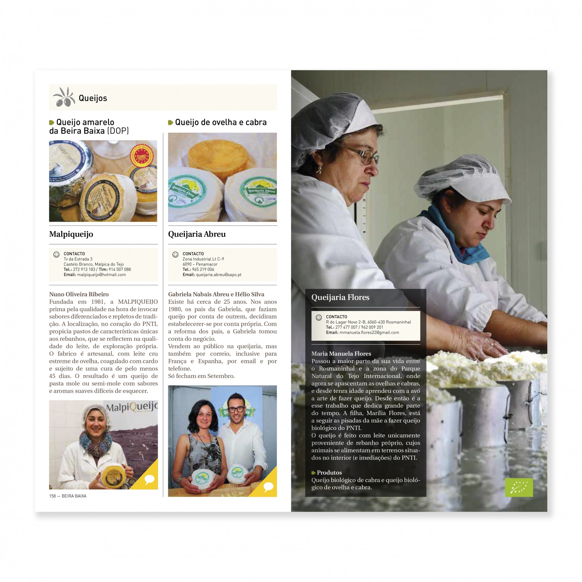 • Página de catálogo com imagens e texto sobre queijos e produção de queijo.