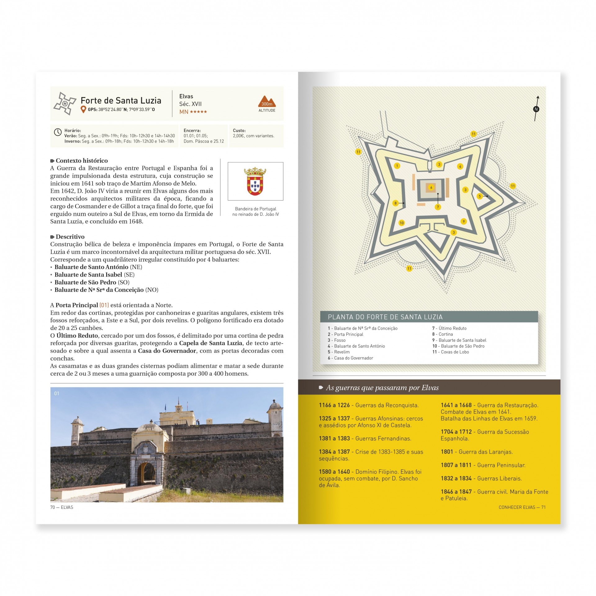 O Castelo de Elvas, a Praça de Elvas, o Forte de Santa Luzia, o Forte da Graça e o Aqueduto da Amoreira destacam-se na paisagem, mas têm uma numerosa companhia de outras construções notáveis. A história militar, a evolução da arquitectura militar - islâmica, fernandina, fortalezas abaluartadas - e um extenso catálogo da história da arte desafiam o nosso conhecimento e o nosso sentido de descoberta.