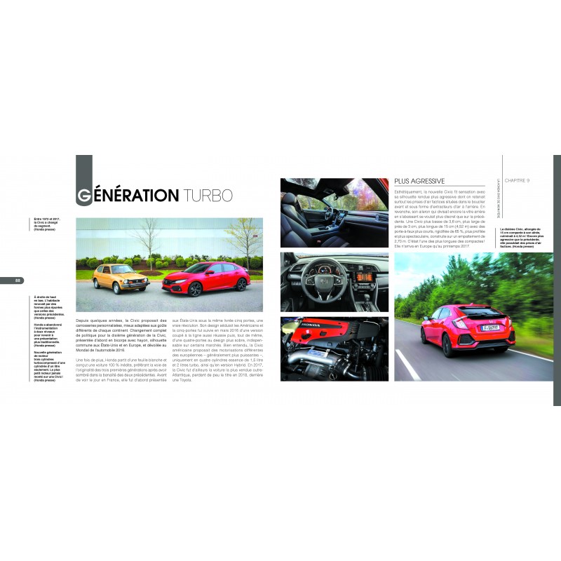A travers ses quarante-huit ans d'existence, la Civic a connu dix générations qui se sont adaptées aux goûts, aux modes, aux spécificités de chaque pays où elle est construite ou importée. Vous découvrirez dans ce livre toutes les générations importée en France avec leurs dérivés, notamment les adorables coupés CRX.