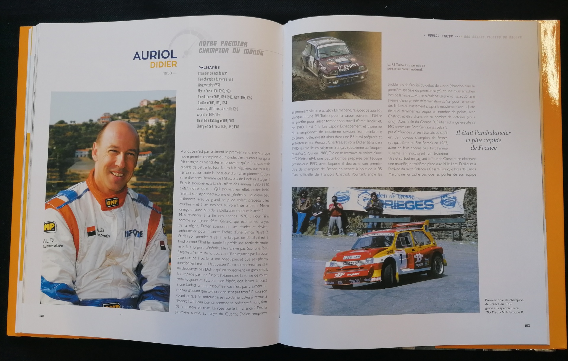 Cet ouvrage réunit les champions du monde (Loeb, Ogier, Auriol), les vice-champions (Michèle Mouton, Fréquelin, Delecour) et la quasi totalité de ceux qui ont gagné un ou plusieurs rallyes mondiaux (Panizzi, Ragnotti, Saby, Darniche, Andruet, Nicolas, Thérier, etc.) depuis la création du championnat en 1973.