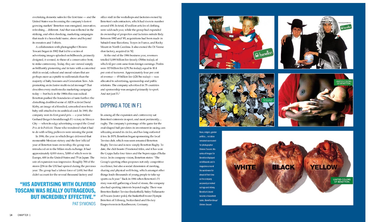 This book tells the entire 1986–2001 history of the Benetton team for the first time with insightful contributions from many of the key participants, including Flavio Briatore, Alessandro Benetton, Pat Symonds and Rory Byrne.