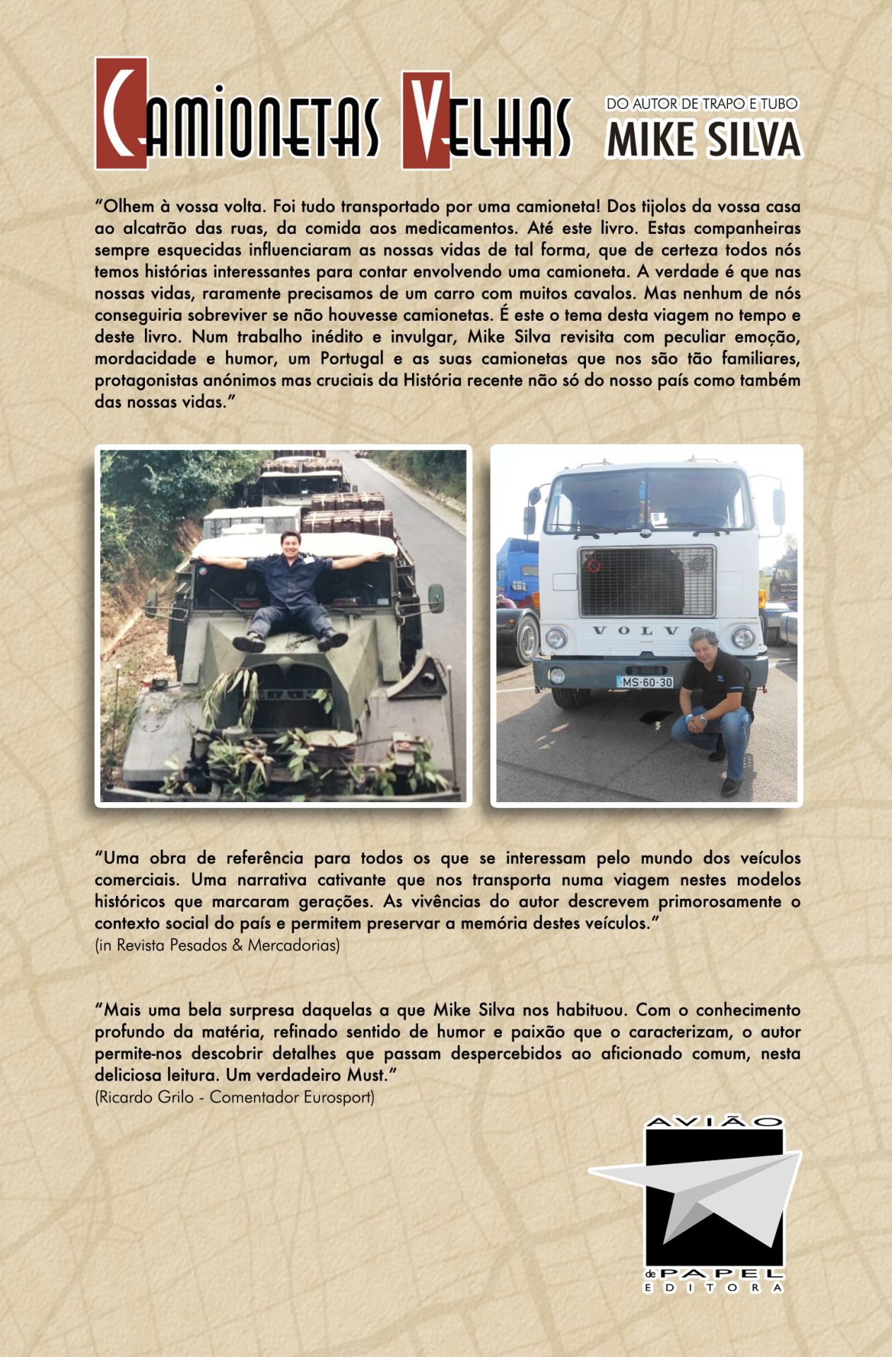 Temas dos capítulos e crónicas: Capitulo 1 - Um puto nos anos 70: “O Volvo de tromba comprida”; “A Citroen H. A carrinha do leite”; “Uma bola e uma DAF2300 Turbo Intercooler”; “Peugeot J7: ia morrendo com lixivia” (entre muitas outras crónicas). Capitulo 2 - Os Bombeiros: “A Hanomag que se tornou numa Mercedes 206D”; “Mercedes L319, o patinho feio” (entre muitas outras crónicas). Capitulo 3 - A Tropa: “Tirar a carta de pesados num Kurzhauber”; “Adoro esta Camioneta (ADC)” (entre muitos outras crónicas). Capitulo 4 - Inglaterra: AEC Routermaster: um bombardeiro sem asas”; “Um estranho e robusto motor: Commer Knocker TS3” (entre muitas outras crónicas).