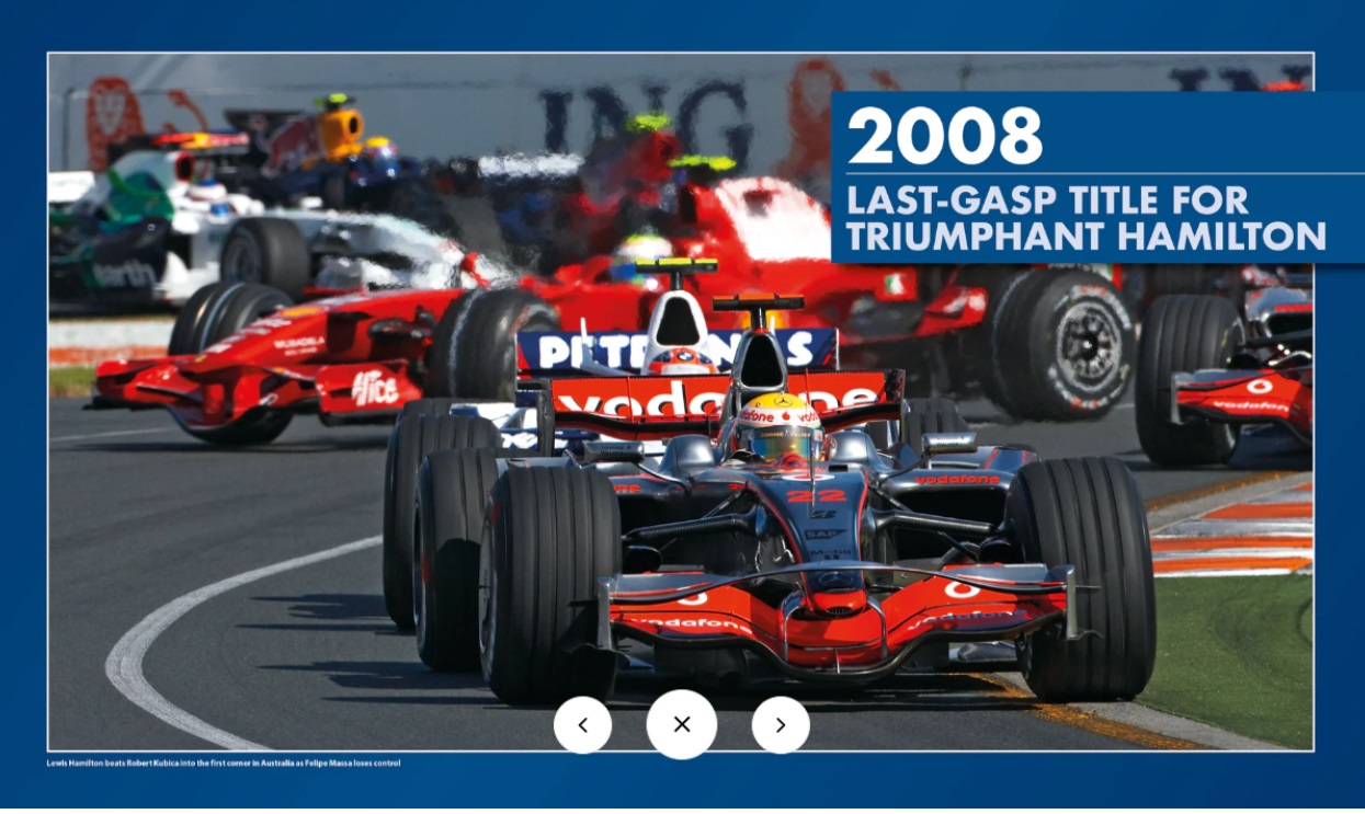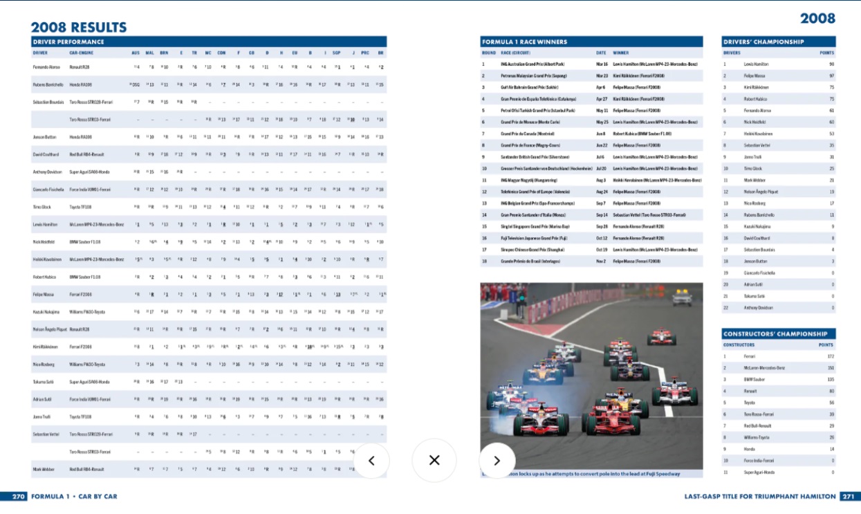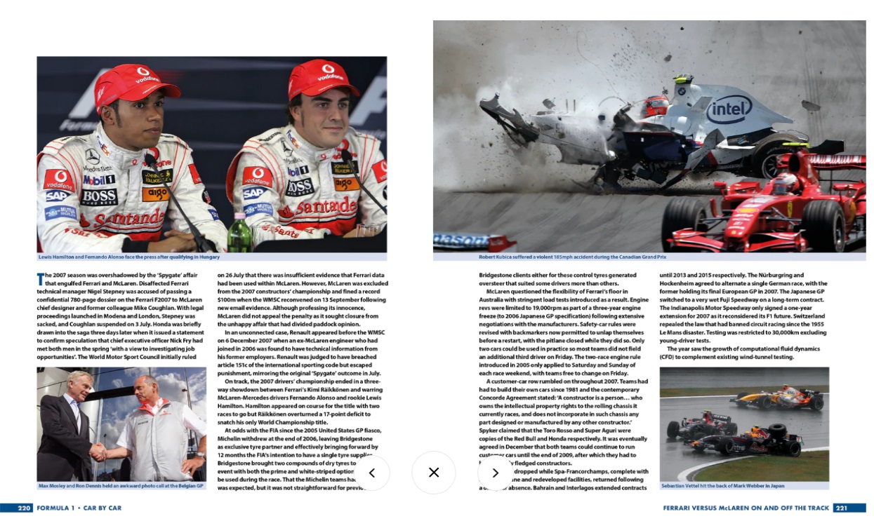 Este livro é o sexto de uma edição de vários volumes, de decada-por-decada, cobre toda a história dos carros e das equipas de Fórmula 1.