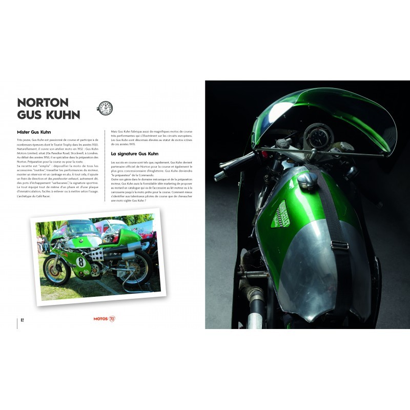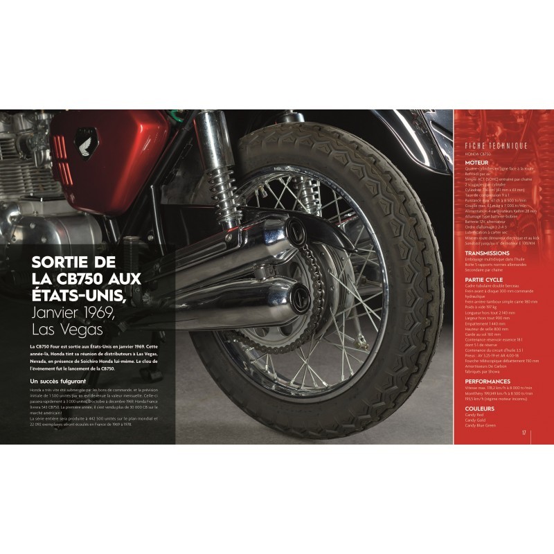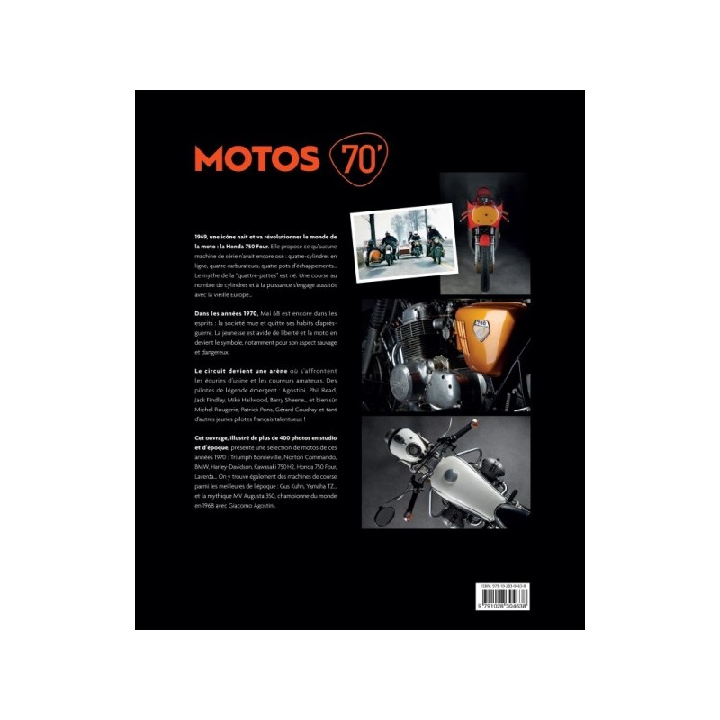 En 1969 est commercialisée la Honda 750 Four, qui va révolutionner le monde de la moto.Tous les constructeurs européens historiques vont renouveler leur gamme pour faire face à la déferlante japonaise. Cet ouvrage vous permettra de vous plonger dans la décennie 1970, particulièrement faste pour le monde motocycliste. Honda 750 Four, Norton commando, Suzuki 750 GT, Kawasaki H2, BMW série 2 et R90S, Triumph Bonneville et Trident, … de nombreux modèles sont abordés, d’un point de vue historique, mais également technique, le tout agrémenté d’anecdotes et de nombreuses images inédites et d’archives.