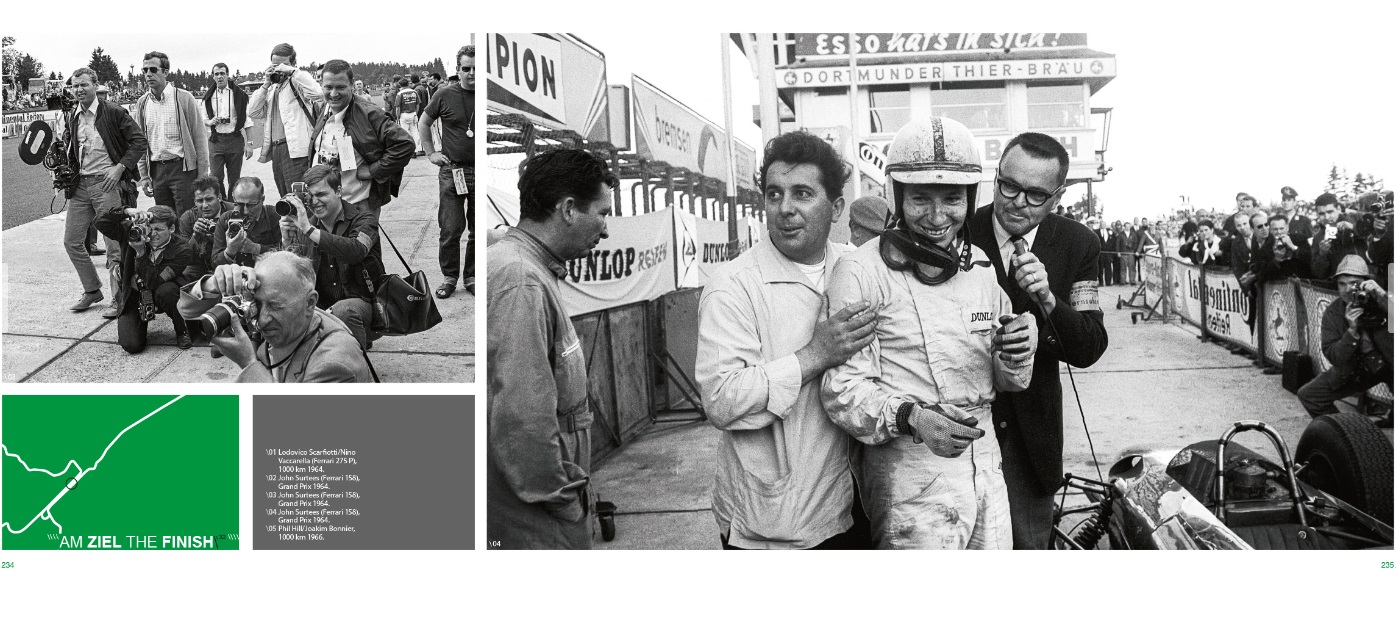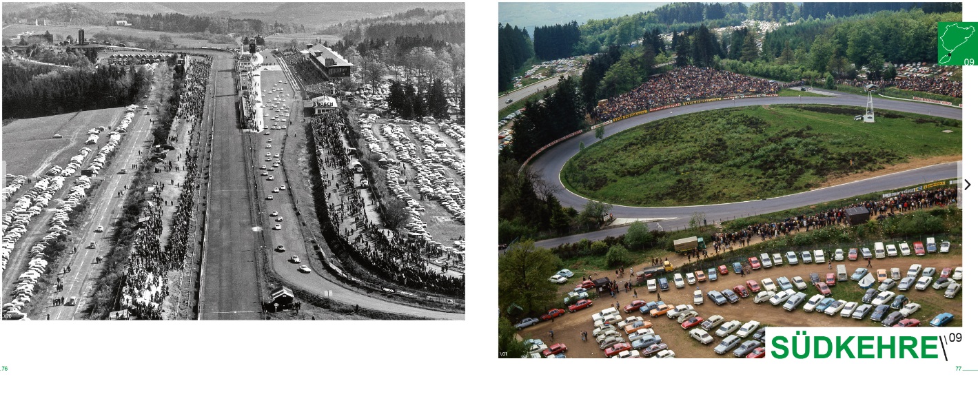 Reacquaintance is a joy. This book recalls the Nürburgring in the time before the advent of major reconstruction work around the circuit. Those were the days when visitors – separated from the action by nothing but hedges – were free to experience and photograph the drivers and their cars, when you did not have to spend the whole weekend sitting in numbered seats but could wander around the track searching for the best vantage points.