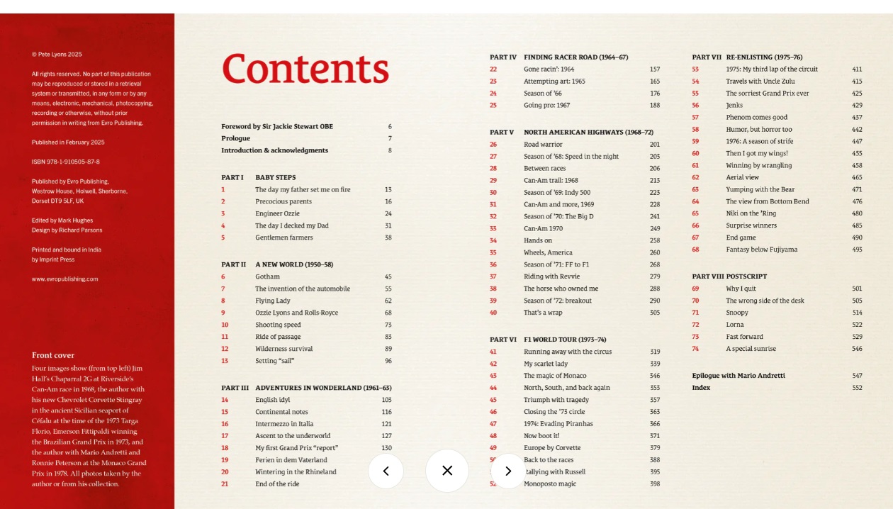 (PUB 01/2025, Autor:Pete Lyons, Prefácio: Sir Jackie Stewart, Epílogo com Mario Andretti, Idioma: Inglês, 560 págs, 24X21 cms, capa dura, 500 fotos)
