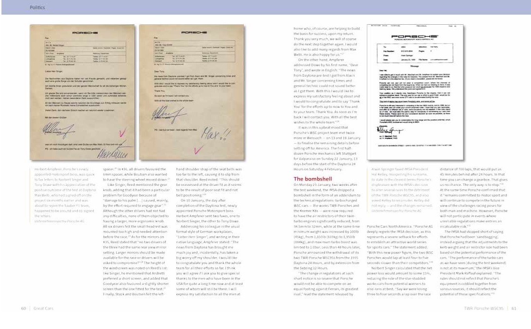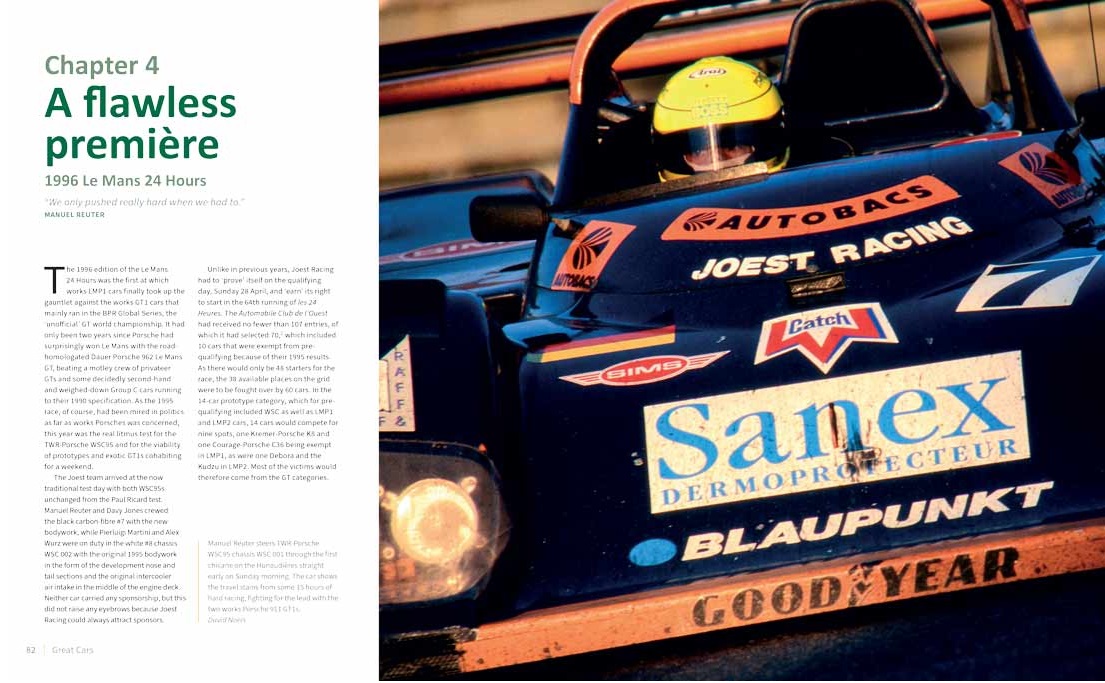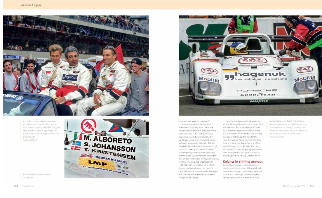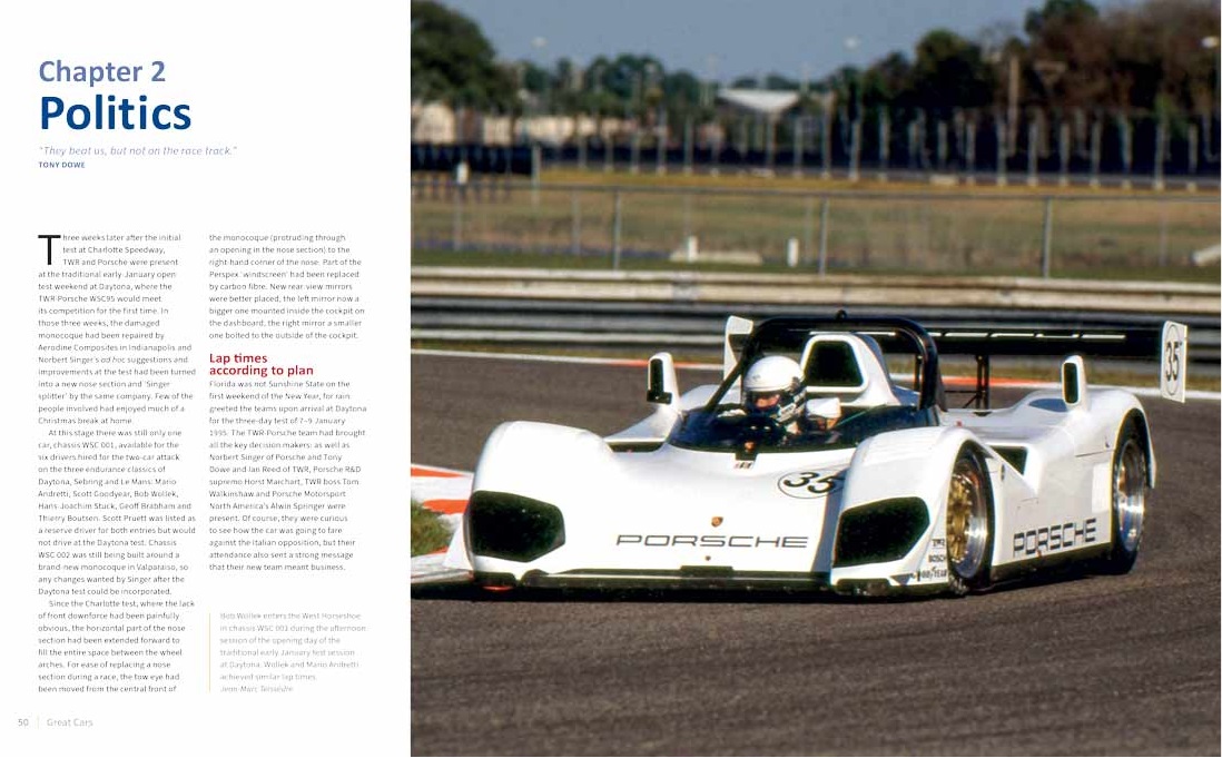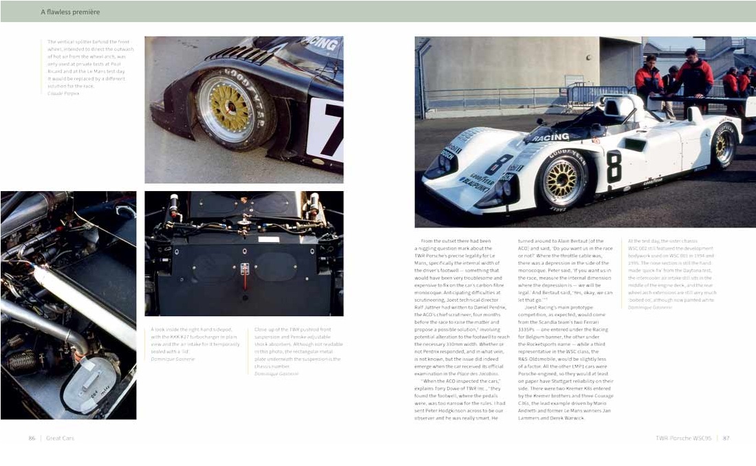 This book is the first about this car and outlines in unprecedented detail its sometimes bizarre career. The author has had access to all relevant documentation in Porsche’s corporate archives in Stuttgart and has spoken to most of the key actors: Porsche Motorsport’s Norbert Singer, Max Welti and Helmut Schmid; Porsche Motorsport North America’s Alwin Springer; Tom Walkinshaw Racing’s Tony Dowe; Joest Racing’s Ralf Jüttner; IMSA’s Mark Raffauf and drivers Mario Andretti, Stefan Johansson and Didier Theys.