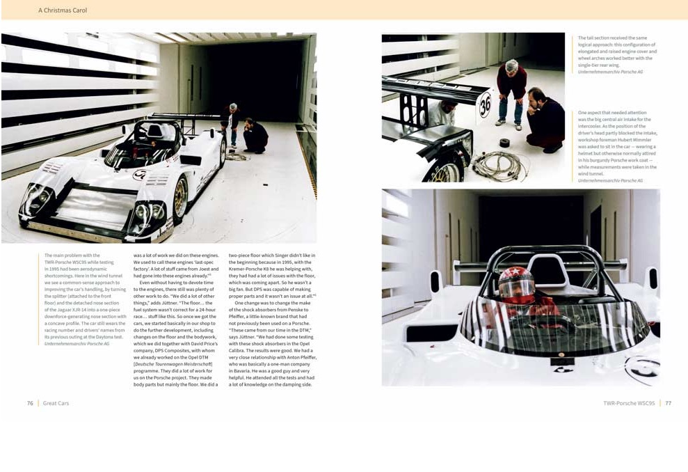 Genesis: discussions between TWR Inc. and Porsche Motorsport North America, and later within Porsche in Germany, before the green light was given to build a Porsche-engined Jaguar. Or a Jaguar-chassised Porsche. Design and build took place in record time and is described in great detail with never-before-seen documents and photos from private collections, as well as sketches, CAD drawings and wind-tunnel models.