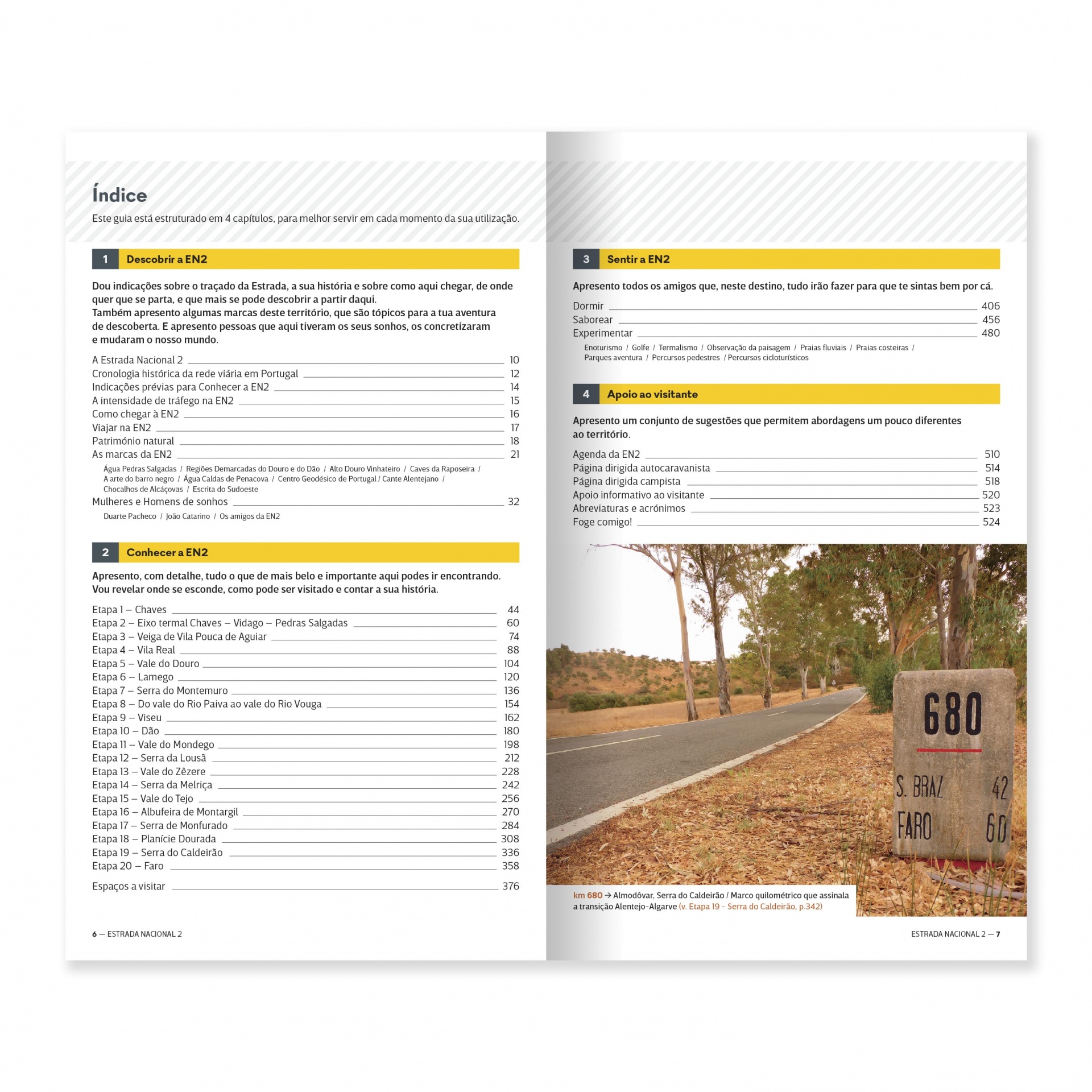 O caminho é mítico - a Estrada Nacional 2: Num alucinante desfilar de temas, este guia traz novas rubricas: A identidade da EN2, Personalidades da EN2, As pontes da EN2, Natureza na EN2, Viagem de sabores, e muitos mais…
