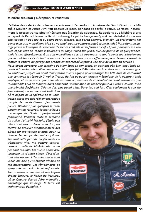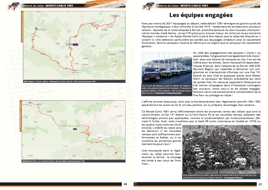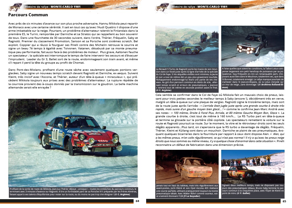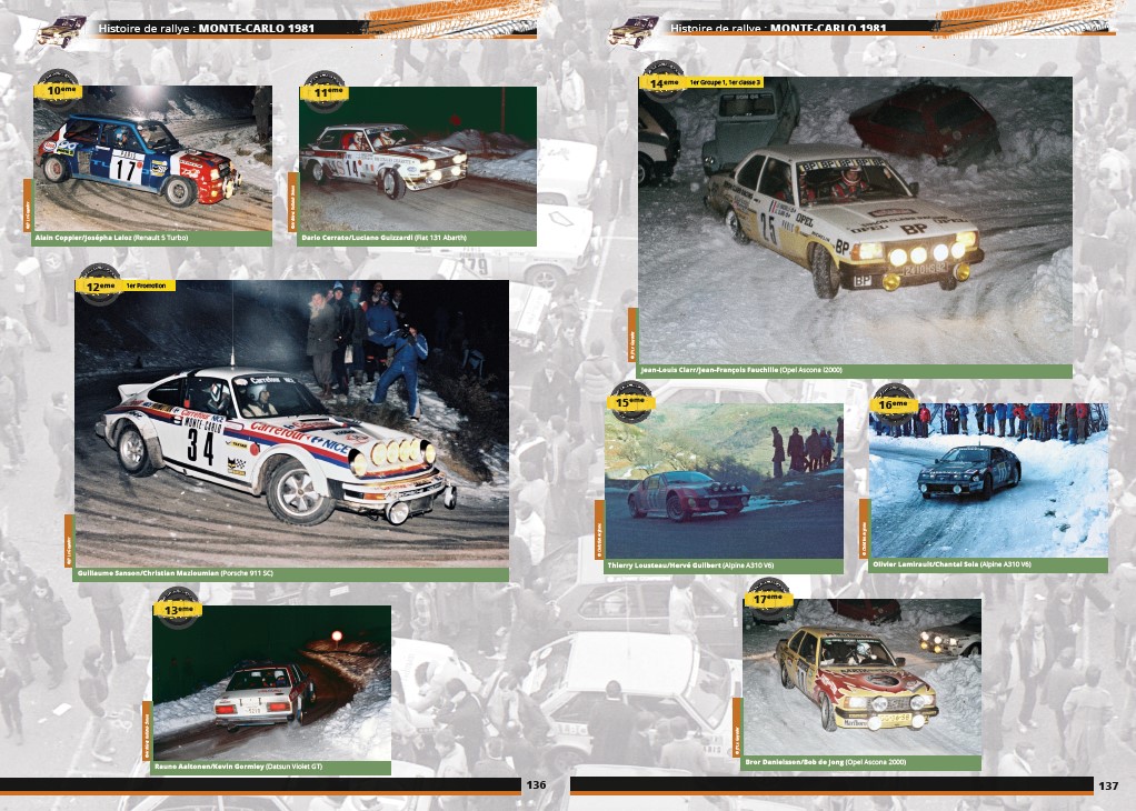 O Rali de Monte Carlo de 1981 é traçado em detalhe neste livro particularmente ricamente ilustrado – 450 fotografias, incluindo muitas inéditas, mostram mais de 95 por cento dos 260 carros que partiram – com numerosos testemunhos dos participantes na altura.