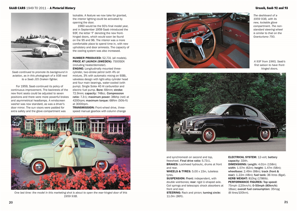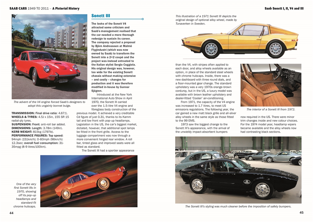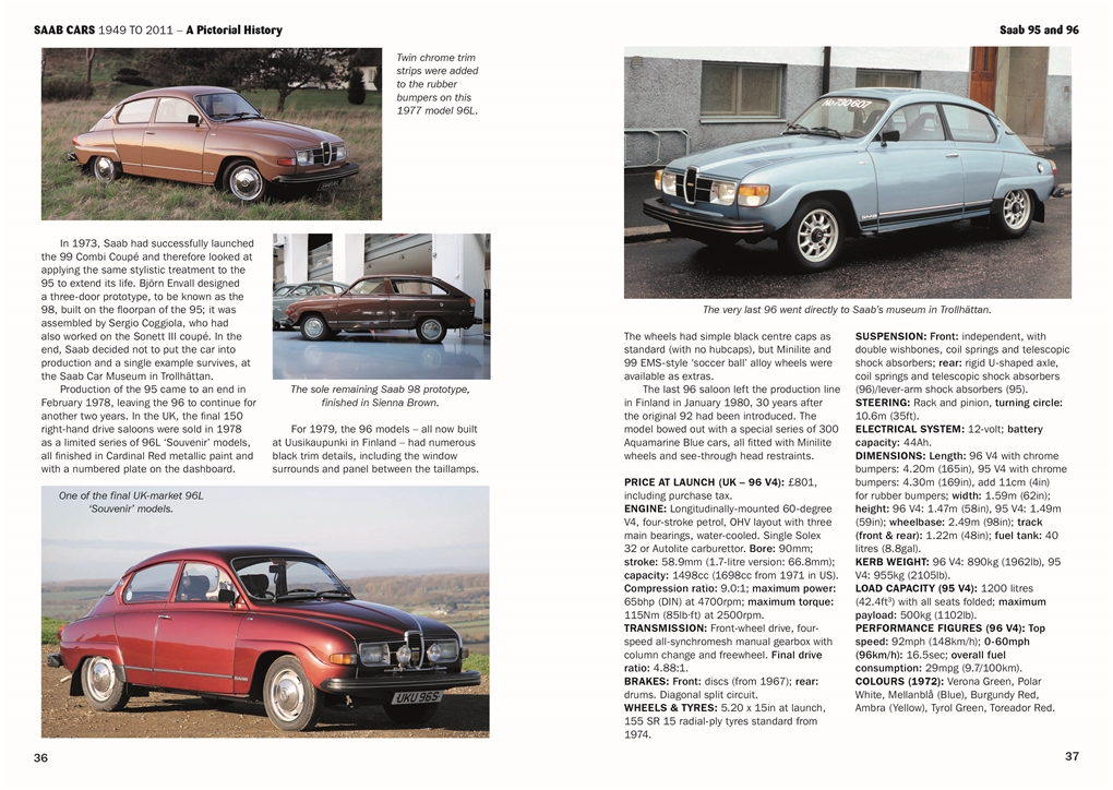 Each chapter provides an introduction to the development and evolution of each model, as well as comprehensive technical information. Production numbers and dates are given, as well as details of limited editions. The book is extensively illustrated in full colour, with many archive photographs from Saab Automobile and the Saab Car Museum showing the cars’ interior and exterior design.
