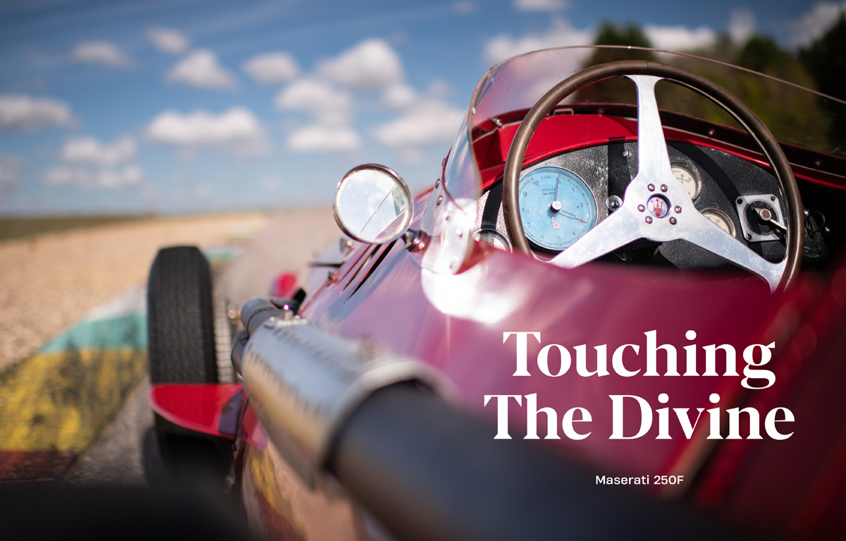 * On track with the Maserati 250F with which Stirling Moss won the 1956 International Gold Cup in Oulton Park, which Jean Behra drove to fifth in the Belgian Grand Prix and which Peter Collins and Carroll Shelby drove… Not a bad list. So, is it really the greatest race car ever?